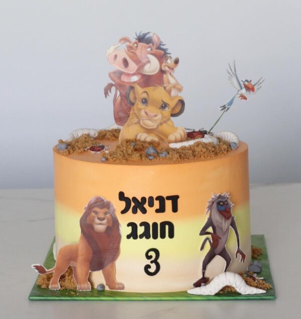 עוגת מלך האריות. האם אתם גם מאוהבים בסימבה הקטן של מלך האריות. עוגת זילוף – בסיס עם עוגת טורט או עוגת שוקולד או עוגת תפוזים או עוגת וניל או עוגת פרג. בין לבין לכל פרוסה ישנו קרם וניל. בנושף שמים תותים או מבחר שוקולדים.